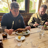 It was then down to Ditcheat for us to do some more filming for Old Gold Racing ahead of their latest sales horse release which they purchased at the Cheltenham January Sale. We seem to be making a monthly appearance at this yard at the moment and as much as it feels like déjà vu writing this out, it really is a pleasure for us when we get to film here. Paul runs such a slick operation and we always feel incredibly welcome and well looked after by him and his team. We’re very excited for you all to get a real insight into this renowned yard in the upcoming weeks so keep your eyes peeled!... Our visit was of course finished off with yet another meal at The Manor alongside Old Gold Racing’s Pete where we all tucked into some very generous portions of good food!